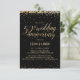 Esta elegante y festiva invitación de 3,5" x 5" para el 50 aniversario de boda, cincuenta, aniversario de bodas de oro, cuenta con confeti dorado (lámina simulada) con las palabras "50 aniversario de boda" en una fuente de escritura dorada. El fondo es negro, pero se puede cambiar a cualquier color de su elección. Los detalles de la celebración se pueden personalizar fácilmente para su evento especial. La parte trasera de la tarjeta cuenta con un patrón de puntos dorados, también con fondo negro que se puede personalizar a su gusto. Una forma hermosa y sencilla de invitar a los invitados a celebrar un aniversario de bodas de oro.