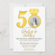 Un magnífico fiesta de 50 años de boda o invitación a la celebración. Un fabuloso diseño fotográfico de efectos dorados y grises con mucho espacio para los detalles de tu fiesta, perfecto para anunciar una celebración para un fiesta del cincuentenario.