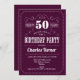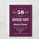 50.ª Invitación a la fiesta de cumpleaños. Elegante diseño retro burdeos y blanco con letra de guión. ¡Salud a 50 años! Mándame un mensaje si necesitas más personalización.