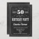 50.ª Invitación a la fiesta de cumpleaños. Elegante diseño retro en blanco y negro con estampado de pizarra.