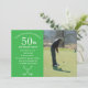 50.º cumpleaños para un golfista, para él. Verde y blanco, foto, moderna, elegante invitación a la fiesta de cumpleaños. Por favor, personalícelo con sus detalles.