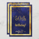 Invitación 50.ª fiesta de cumpleaños marco de oro azul
