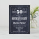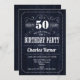 50.ª Invitación a la fiesta de cumpleaños. El diseño es elegante, con un diseño de madera azul marino. ¡Se puede personalizar en cualquier edad!