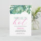 La invitación a los 50 años de su cálida invitación al trópico incluye un tablero superior de mi original hojas de palma monstera color agua en tonos verde y turquesa. Los detalles de su fiesta se configuran en una tipografía de escritura moderna y fuente serif. Personalizar esta plantilla para 50 y fabulosos fiestas tropicales o un luau hawaiano. Para ver más divertidos temas de playa e invitaciones a pie de playa del Victoria Grigaliunas, visite www.zazzle.com/dotellabelle