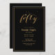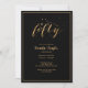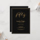 Elegante invitación de cumpleaños número 50 en un diseño negro y dorado. Personalizar con los datos de su fiesta.