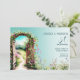 Feminine Floral Lámpara de jardín Verde azulada Invitación a los 50 Años. Puerta a un jardín floreciente sobre un fondo verde azulado de gradiente. Personaliza el texto y lo personalizar a tu evento especial. "50 y todavía en flor" envía un mensaje de una mujer madura con una mirada saludable y positiva sobre la vida. Cada edad es un rostro en la vida - ahora es su momento para florecer y brillar. La parte posterior de la tarjeta tiene el mismo gradiente de color con la opción de texto adicional: ex. Trae a tu pareja, código de vestimenta: relajado o texto de tu elección.