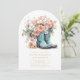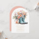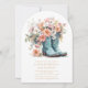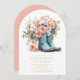 La invitación de cumpleaños 50th Birthday Rustic Cowgirl Boots Flowers incluye un par de botas de vaquera de cuero con melocotón, flores rosadas y blancas y la información personalizada de tu fiesta de cumpleaños número 50 a continuación. Creado por Evco Studio www.zazzle.com/store/evcostudio
