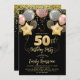Invitación 50.ª Purpurina de oro de cumpleaños Globos de Conf
