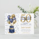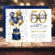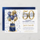 Invitación 50.ª tarta de globo azul de la marina de cumpleaño