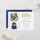 Esta fabulosa invitación para la fiesta de cumpleaños número 50 de los hombres, que incluye una torta azul marino de dos capas y oro con globos azul marino y dorado, el número 50 en oro y azul brillante sería perfecto para celebrar a tu esposo, hermano, papá, amigo, compañero de trabajo. Es tradicional y clásico, fresco, moderno y contemporáneo. La parte de atrás es un Relieve metalizado azul marino de coordinación.