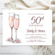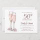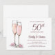 Levanten un vaso con nosotros mientras brindemos por nuestro 50 aniversario de bodas. Esta elegante invitación, con dos brillantes vasos de champán rosa, es la manera perfecta de invitar a tus amigos y familia a unirse a la alegría, la risa y los preciados recuerdos. Puede agregar sin esfuerzo todos los detalles necesarios al texto del personalizable. Elija entre varios tipos de papel y estilos de esquina para que sus invitaciones sean únicas. Además, tiene la opción de descargar la invitación si prefiere un formato digital.