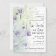 Flores de color morado suave decoran esta elegante invitación a la fiesta de aniversario de los bodas, pintada a mano. La tipografía de moda le da al texto un ambiente moderno y casual. Un lavabo de color verde suave en la parte delantera y trasera crea una paleta sofisticada.