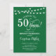 50.ª Invitación de cumpleaños. Diseño sencillo de color verde y blanco de selva esmeralda con fuente de guión y luces de cadena de hadas. Saludos a 50 años. ¡Se puede personalizar en cualquier edad! Mándame un mensaje si necesitas más personalización.