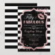 50.ª Invitación de cumpleaños. Elegante diseño blanco negro con rosa purpurina falso de oro. Cuenta con un beso de labios rosas, rayas blancas negras, un confetti y un tipo de letra de guión. Perfecto para una elegante fiesta de cumpleaños. ¡Cincuenta Fabuloso! Mándame un mensaje si necesitas más personalización.