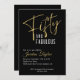 Invitación 50.º cumpleaños elegante guión negro y oro