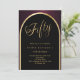 Una elegante invitación de cumpleaños número 50. Un fondo negro y borgoñoso con un arco dorado en la parte delantera.