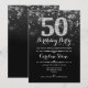 50.ª Invitación de cumpleaños. Elegante diseño blanco negro con una falsa plata purpurina. Cumpleaños de adultos. Incluye diamantes y tipos de letra de script. Invitación de cumpleaños de hombres o mujeres. Perfecto para una elegante fiesta de cumpleaños. Mándame un mensaje si necesitas más personalización.