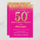 Invitación 50.º cumpleaños Purpurina de oro y rosado caliente