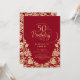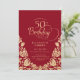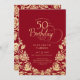 Invitación a la fiesta de cumpleaños 50 del elegante oro rojo. Diseño elegante con rosas, Relieve metalizado de oro falso y tipo de letra de guión de tipografía. La carta de invitación a la moda es perfecta para una elegante celebración de cumpleaños femenina. Personaliza con tus propios detalles. Se puede personalizar a cualquier edad. Invitaciones Zazzle impresas o una plantilla imprimible digital de descarga instantánea.