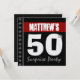 Invitación 50.º cumpleaños sorpresa rojo negro metálico