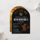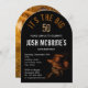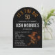 50.º Gorra de foto de cumpleaños y la invitación a la masculina de botas de cuero negro presentan en el suelo un par de botas de vaquero negro con un gorra de vaquero marrón cubierto por encima. Personaliza al revés con tu foto favorita Creada por Evco Studio www.zazzle.com/store/evcostudio