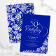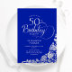 Invitación 50.º natalicio Elegante Rosas Royal Blue Silver