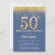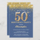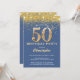 Invitación 50.º Purpurina de oro y azul de cumpleaños Confett
