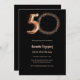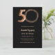 Una moderna y elegante invitación fotográfica para una fiesta de cumpleaños número 50. Un fondo negro, rosa de oro. Personalice y agregue los detalles de su fiesta.