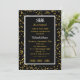 ¡Esta invitación de 50 años es toda una sorpresa! El diseño presenta confeti dorado sobre un fondo negro con un marco blanco y un fondo negro para los detalles de tu fiesta. Las palabras "Shhh es una sorpresa" aparecen en la parte superior para que los invitados sepan mantener al fiesta en secreto. Copyright henishouseofpaper