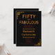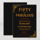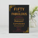 A beautiful, modern, 50th birthday invitation you can personalize and send out for your fiftieth birthday party celebration. The words "Fifty and Fabulous" are set using popular typography. The red and gold text colors can be changed using the edit menu. A classic solid black adorns the back of the card. Other colors and patterns are available.