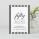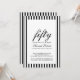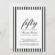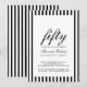 A beautiful script with classic stripes modern 50th birthday invitation you can personalize and send out for your fiftieth birthday party celebration. The words "50 and Fabulous" are set using popular typography. The black text colors and stripes can be changed using the edit menu. A black and white stripe pattern also adorns the back of the card. Other colors and patterns are available.