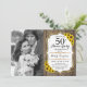 Invitación de Bodas de Oro con Foto. Diseño rústico en blanco con falso dorado brillante. Cuenta con girasoles, patrón de madera, letra script y confeti. ¡Se puede personalizar para cualquier año! Envíame un mensaje si necesitas más personalización.