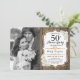 Invitación de Bodas de Oro 50 Aniversario con Foto. Diseño rústico en blanco con falso dorado brillante. Cuenta con patrón de madera, fuente script, rosas blancas y confeti. ¡Se puede personalizar para cualquier año! Envíame un mensaje si necesitas una personalización adicional.