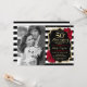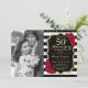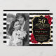 Invitación de Bodas de Oro con Foto. Diseño elegante en rojo y negro con falso dorado brillante. Cuenta con rayas blancas y negras, fuente script, rosas rojas y confeti. ¡Se puede personalizar para cualquier año! Envíame un mensaje si necesitas una personalización adicional.
