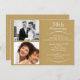Esta invitación de aniversario de bodas de oro número 50 cuenta con un patrón de damasco repujado en parte del diseño y tiene espacio para dos fotografías. El diseño también incluye dos motivos de florituras blancas encima y debajo del área de texto. La parte trasera de la invitación presenta de nuevo el patrón de damasco. Esta invitación es adecuada para un aniversario de bodas de oro número 50.