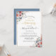 Invitación 50 Aniversario de Boda, Floral Azul Dorado Desmaya
