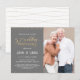 Esta elegante y festiva invitación para la fiesta de aniversario de bodas de oro, 50º, quincuagésimo, de 4,5" x 6,25" cuenta con confeti dorado (hoja simulada) con las palabras "aniversario de bodas 50" que se muestran en una tipografía de escritura dorada. Hay un área de foto personalizada para su imagen de los invitados de honor. El fondo es gris, pero se puede cambiar a cualquier color de su elección. Los detalles de la celebración se pueden personalizar fácilmente para su evento especial. La parte posterior de la tarjeta cuenta con un patrón de puntos dorados, donde puede dejar el fondo blanco o personalizar a un color de su agrado. Una forma hermosa y sencilla de invitar a los invitados a celebrar un aniversario de bodas de oro. Tarjetas de RVSP y Agradecimiento coincidentes también están disponibles en mi tienda (https://www
