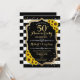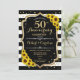 Invitación de Bodas de Oro. Diseño floral en blanco y negro con brillo dorado falso. Cuenta con girasoles, rayas negras y blancas, fuente de letra elegante y confeti. Perfecto para una fiesta elegante. Personaliza con tus propios detalles.