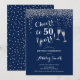 50.ª Invitación de cumpleaños. ¡Salud A 50 Años! Diseño elegante en marina, blanco y plateado. Incluye gafas de champán, letra de guión y confeti de plata purpurina. Perfecto para una elegante fiesta de 50 años. Personaliza con tus propios detalles. Se puede personalizar para mostrar cualquier edad.