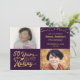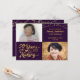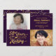 Invite a sus invitados con esta invitación de 50 años en color morado y dorado, con tipografía retro que indica 50 AÑOS EN EL MAKING y le permite incluir su año de nacimiento como "est 19XX" integrado en el diseño y añadir sus fotos DE ENTONCES y AHORA. En la parte trasera hay un lugar para información detallada.