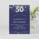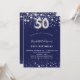 Una invitación moderna, elegante y glamurosa para una fiesta de cumpleaños número 50. Un fondo azul marino, decorado con estrellas de imitación plateadas. Personalice y agregue su nombre y detalles del fiesta. El número 50 se escribe con un tipo de letra de estilo globo.