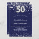 Invitación 50 años estrellas de plata azul marino lujo
