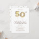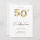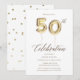 Elegante y divertida invitación con un gran globo dorado número 50 perfecta para celebraciones de cumpleaños y aniversarios de bodas o negocios