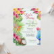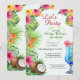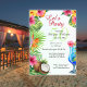 Celebre el cumpleaños número 50 de su ser querido con una fiesta de temática tropical utilizando nuestras impresionantes invitaciones de acuarela. Con flores hawaianas, un coco y un cóctel contra un fondo claro, el diseño estalla con energía vibrante. "Vamos a festejar" y "50" en elegante letra script establecen el tono festivo, mientras que el reverso promete "Cena, Bebida, Baile". Personalice fácilmente cada detalle en una fuente serif clásica para crear la invitación perfecta. Comience a planificar una inolvidable fiesta de cumpleaños número 50 hoy mismo: ¡pida ahora sus invitaciones personalizadas!