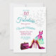 Un vestido de cóctel floral de bonito con zapatos y bolso es la base de esta invitación de 50 años fabulosa. Cambie fácilmente la información de la invitación de su propio personalizado.