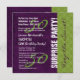Este diseño moderno en púrpura, blanco y verde es una manera elegante de invitar a sus huéspedes a una fiesta de cumpleaños de encargo del año de la 50.a SORPRESA. Todo el texto es totalmente adaptable. Usted puede cambiar el color de fondo o el color de texto para una diversa mirada. Recomiendo el papel metálico hued del hielo superior, que dará a sus invitaciones un reflejo y un brillo festivos.