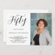 Celebra tu día especial con esta simple invitación minimalista a la fiesta de cumpleaños número 50. Este diseño presenta el guión elegante "Fifty" en un fondo blanco limpio. Personaliza tu foto favorita. Fácil de personalizar. Cumpleaños!