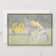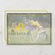 El diseño de esta fiesta de cumpleaños "50 y Fabulous" incluye una opacidad disminuida de una bicicleta con una canasta de manillar llena de flores. Todos los detalles del fiesta están en la parte de atrás. Rellene los campos de texto de la plantilla bajo personalización con su información.