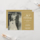 Personalise with your favourite wedding photo and your special 50th golden wedding anniversary celebration details in chic white typography on a gold background. The reverse features gold dust confetti. Designed by Thisisnotme©