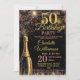 Invitación 50th Birthday Bubbly Fireworks Gold Pink